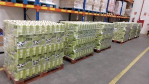 Hemos recibido 12 palés de leche provenientes de la Federación de Bancos de Alimentos de Castilla y León.